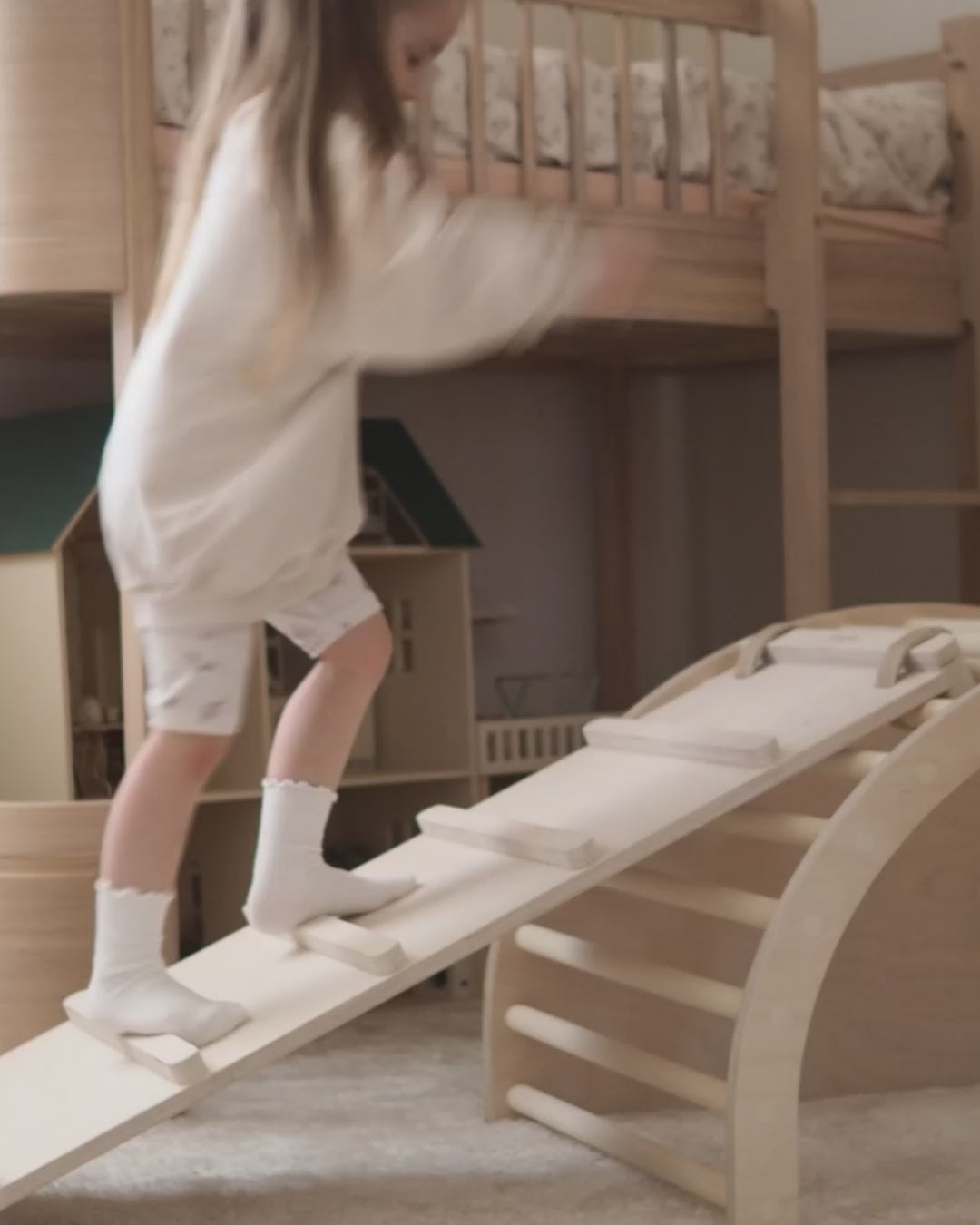 Monikäyttöiset tuotteemme tukevat lapsen motoristen taitojen kehittymistä – kuten kävelyä, kiipeämistä ja tasapainoilua – turvallisen ja innostavan leikin kautta.