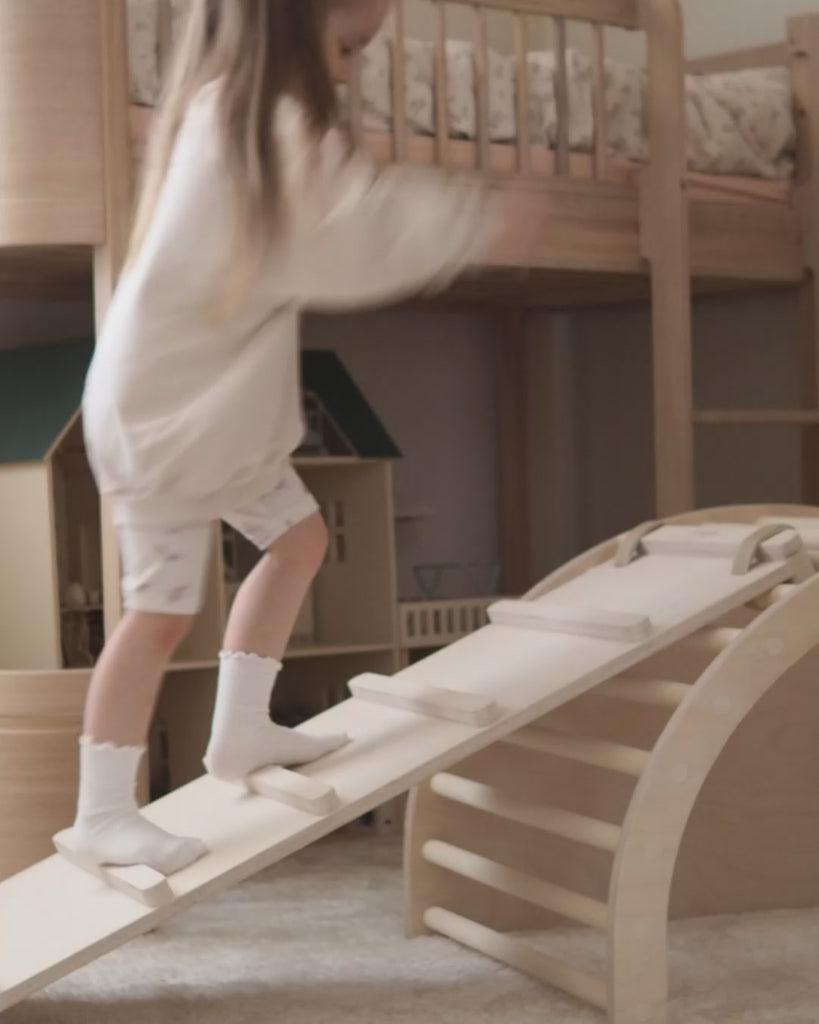 TUOHI II liukuramppi on hauska ja monipuolinen tuote, joka sopii yhdistettäväksi niin LUOTO II kiipeilykaaren kuin valikoimastamme löytyvien lasten ja aikuisten puolapuidenkin kanssa. Liukuramppi vie leikit kertaheitolla uudelle tasolle, kun tutut kiipeilykaari tai puolapuut saavat aivan uusia ulottuvuuksia.